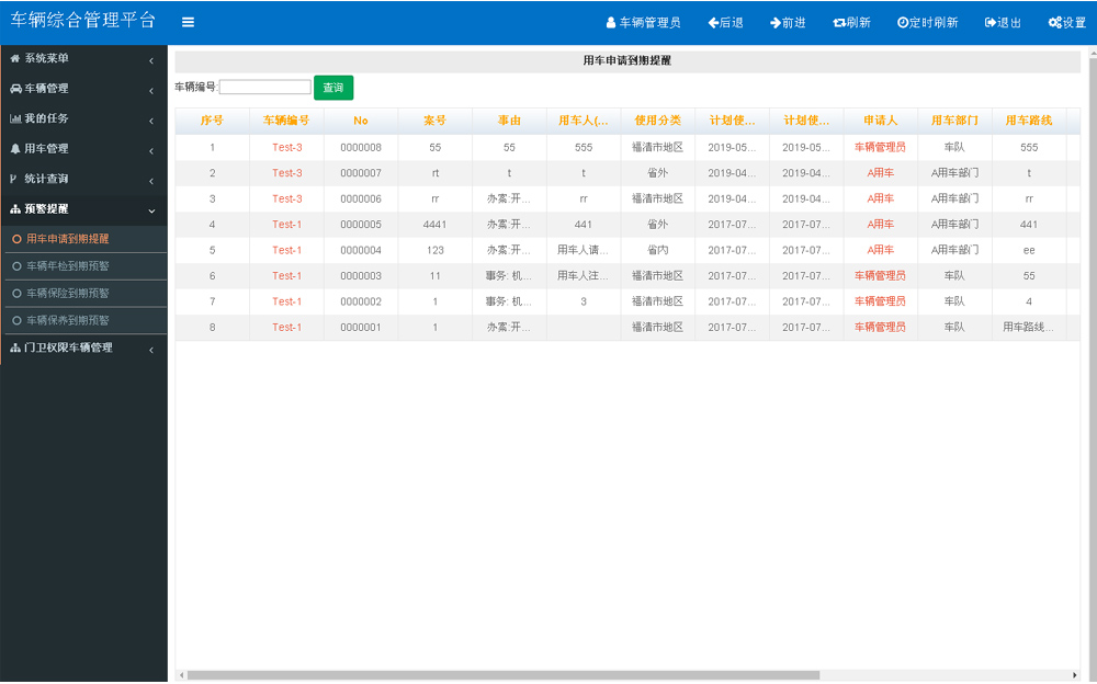 事务管理 购车申请管理、车辆报废管理、车辆大修申请管理、车辆换表申请管理