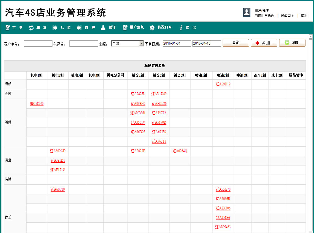 管理员可以新增用户,并分配权限,维护维修单的来源及车辆保险公司。