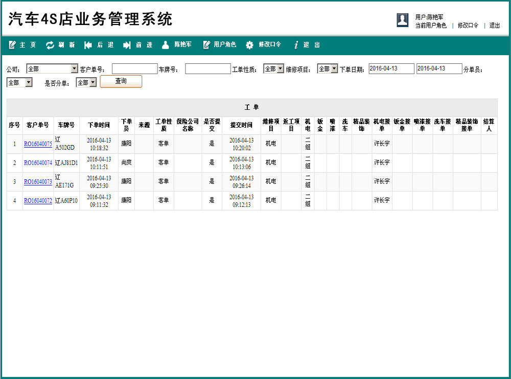 森格锐软件已经为多个汽车4S店的企业提供成功的信息化解决方案, 依据汽车4S店企业实际工作流程定制开发 ,将接车 、指派工单 、机电、钣金、装饰单、喷漆、洗车、配件等工作串联起来,规范并提升整个流程管理。 各部门实现信息共享,终结工作过程中的信息延误和信息不对称情况,降低沟通成本,及时有效的反映实际业务情况,发现并解决各种不利因素,从而提高工作效率,节省人力成本,提升企业的管理水平。