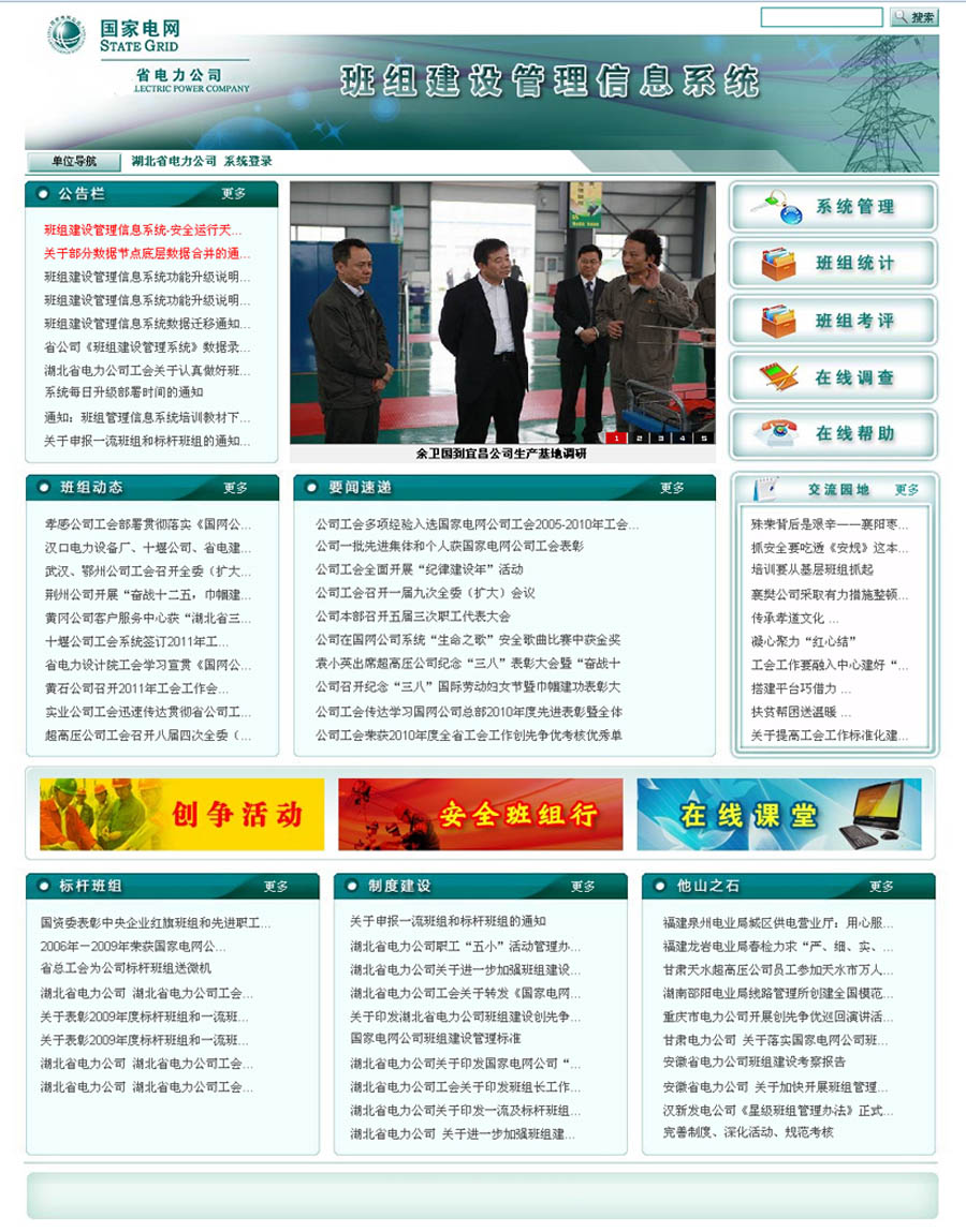 该系统以国资委班组建设管理标准为依据,以班组建设管理平台为重点,以班组八大建设内容为核心,通过省公司、地市公司、县级公司、基层班组四级管理(可以灵活定制),实现了班组建设 “上下联动、整体推进”。 通过该系统的使用,公司各级人员都能够很好地领会国资委班组建设的要求,真正做到将国资委“创争”活动精神和《班组建设管理标准》贯彻落实到班组。