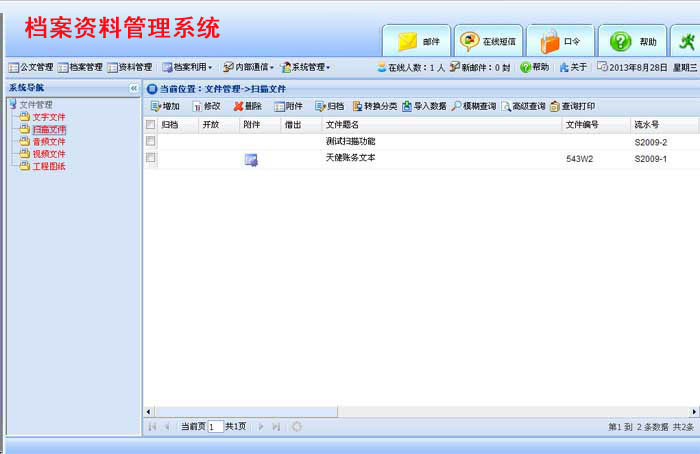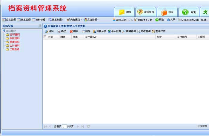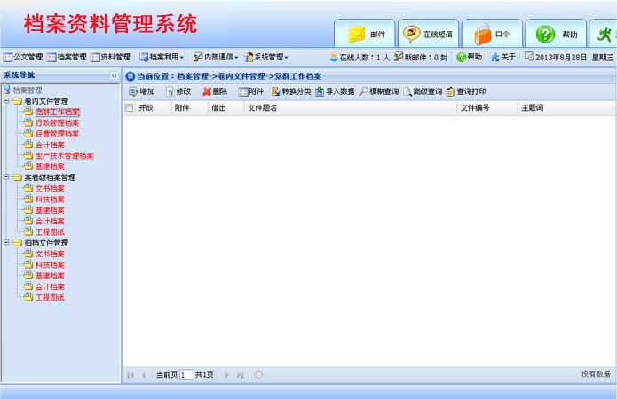 | 内部邮件 | 供内部在档案借阅、检索协同工作时,以邮件形式进行沟通 |