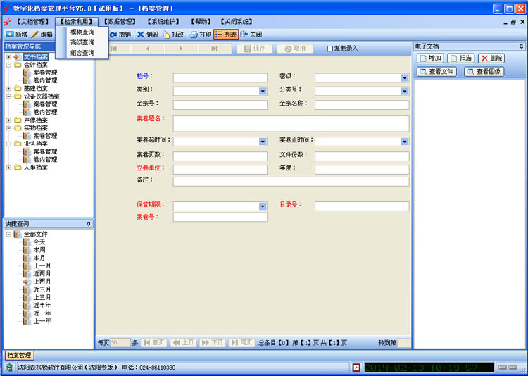 | 模糊检索 | 档案维护人员和编辑人员设计的模糊检索功能 |