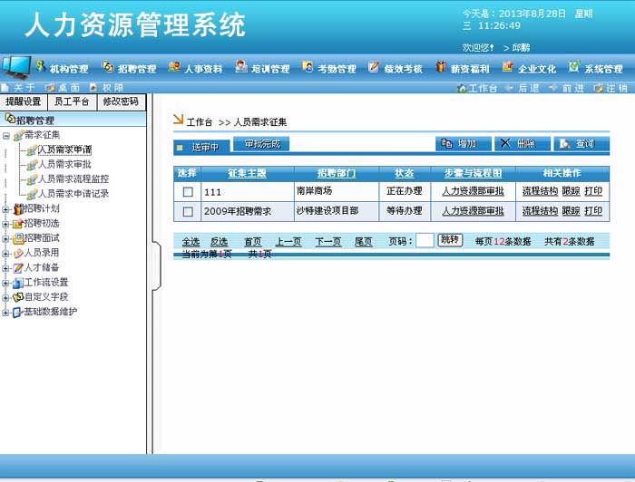 用户可以对职务和岗位进行设计和撤销。对岗位编制进行管理。可以为职务及岗位建立说明书。可以实时统计通过各部门及岗位编制人数统计表,可以随时了解企业编制情况。