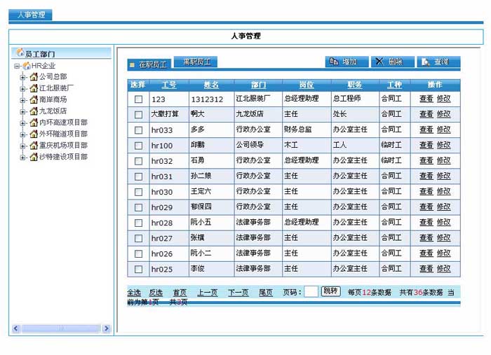 系统支持人事业务的在线办理,包括:入职、转正、调岗、调薪、奖励、处分、离职、复职等。这些业务即可以直接办理,也可以通过系统工作流平台进行审批处理。业务办理的结果直接记录在人事档案中。