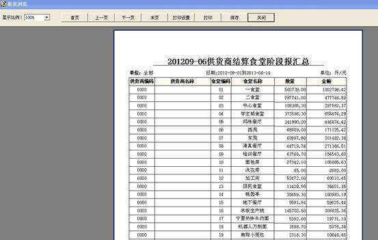 e) 中心服务器根据各个食堂自动采集的数据,生成当天的明细和汇总报表,供审核以及各个食堂对账