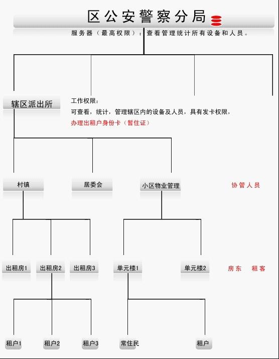 公安局,服务器所在地,(最高权限者)有权查看,管理,统计所有设备和人员;