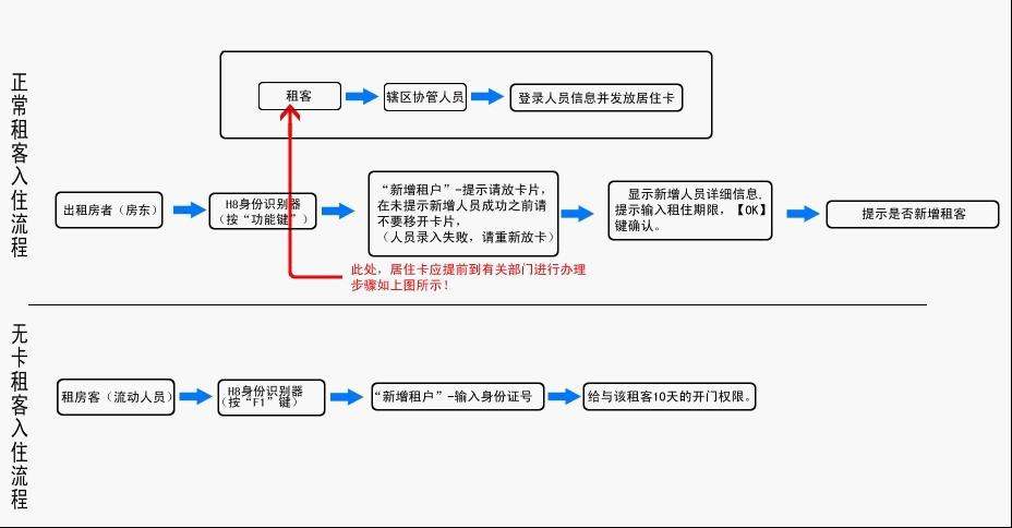 租客,必须到管理处办理居住卡,进行身份登记等资料备份;