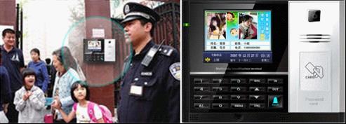 家长在门卫处进入刷卡接送流程,刷卡成功,终端界面显示学生与家长的档案照片,管理人员可以通过现场比对来确认家长身份。