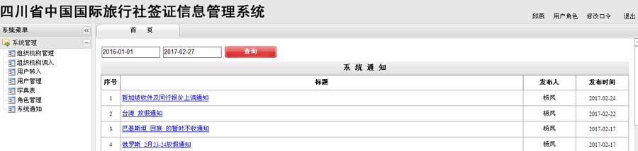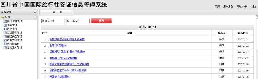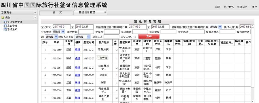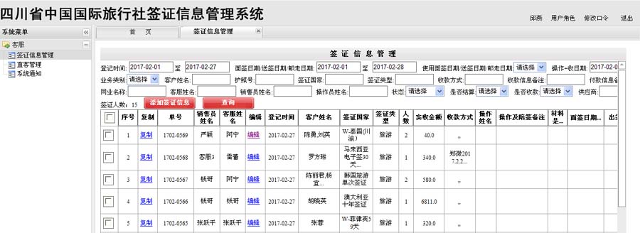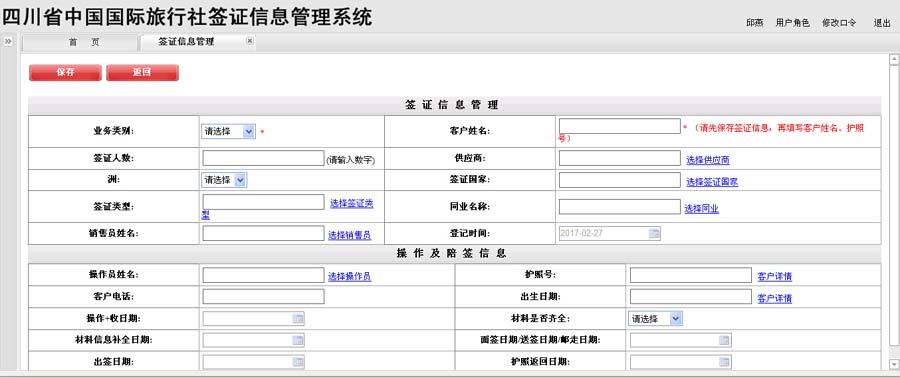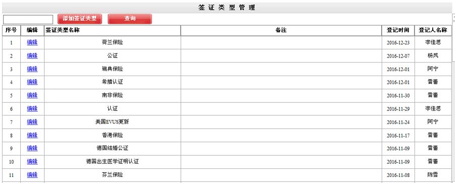 签证信息管理: