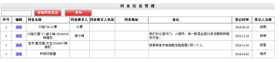 同业名称、同业联系人、 同业联系人电话、同业地址