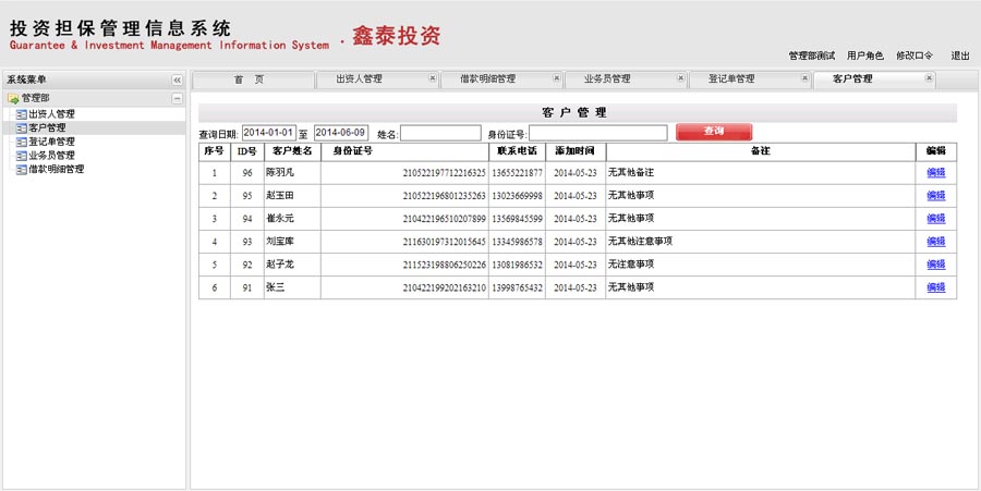 投资担保行业是信息知识高度密集型行业,对信息具有高度依赖性,投资担保业务的迅速扩大,给每个投资担保企业带来了管理困扰,企业面临着信息安全、经营风险、业务效率、管理规范等诸多问题,迫切需要一套科学规范的管理平台。为了满足广大公司和客户的需求,森格锐投资担保软件专门为这些投资公司、担保公司、小额贷款公司、信贷公司等有资金借贷业务的公司,量身定制了这套管理系统。该系统实现了对投资担保项目合同管理、业务员管理、短信发送等业务,大大提升了投资担保企业管理的水平和工作效率,为企业的快速增长提供了全面解决方案 。