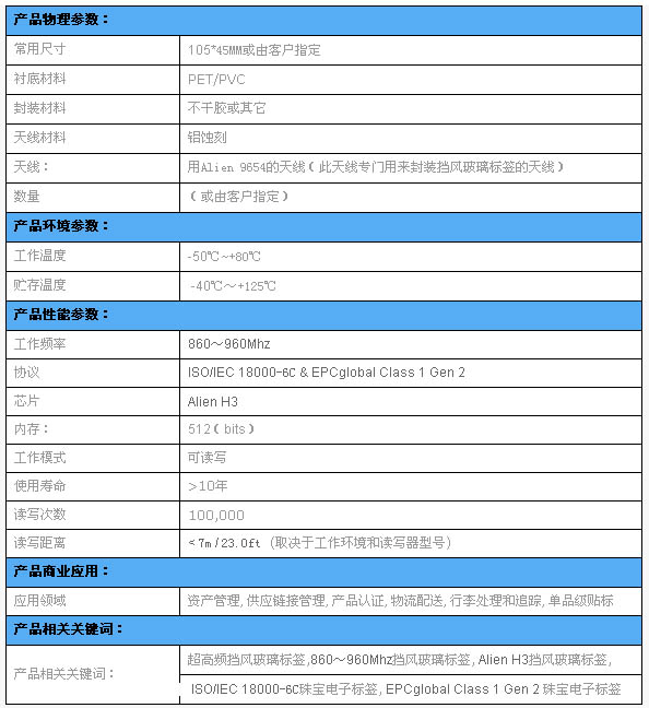 无源汽车档风玻璃电子标签